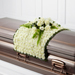 The FTD® Blanket of Flowers™ is a beautiful adornment for the top of their casket at the final farewell service. White chrysanthemums form a blanket of blooms that drape across the casket accented with an arrangement of white roses, white double lisianthus, Bells of Ireland, ivy, sword fern and a variety of lush greens to create an exquisite look of sweet serenity to honor the life of the deceased.