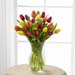 B25-4837The FTD® Bright Tulips Bouquet is a true sign of spring's arrival. An assortment of colorful tulips, boasting the shades of red, orange, yellow and purple create a fantastic bouquet seated in a classic clear glass vase to create a sunlit sentiment of happy wishes for your special recipient.