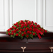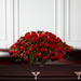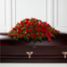 The FTD® Dearly Departed™ Casket Spray bursts with the love and passion that the deceased had for their life and loved ones. Rich red roses and carnations are gorgeously arranged amongst lush greens and accented with a red satin ribbon to create the ideal adornment for their casket at their final farewell service.