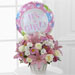 The FTD® Girls Are Great!™ Bouquet is blooming with sweet love to congratulate the new family on their darling baby girl! White roses, white Peruvian lilies, pink carnations, pink matsumoto asters, pink Asiatic lilies and lush greens are beautifully arranged in a round whitewash woodchip basket. Presented with a Mylar balloon declaring, "It's a Girl!" this incredible flower arrangement is the perfect welcome for their new addition.