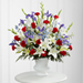 "A dramatic floral salute respectfully features a heroic color palette of red, white and blue to honor the life of a hero. Our Gratitude™ Arrangement is designed with lilies, irises, delphinium and roses to share your sympathies with reverence and respect. While the lilies may initially arrive in bud form, they beautifully transform as they open. - Details: o Good arrangement is approximately 32""H x 26""W o Better arrangement is approximately 35""H x 29""W o Best Arrangement is approximately 36""H x 30""W "