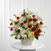 The FTD® In Loving Memory™ Arrangement pays tribute to a life well-lived with every beautiful bloom. Red roses and carnations pop amongst this incredible arrangement of white hydrangea, Oriental lilies, snapdragons, larkspur, Queen Anne's Lace and assorted lush greens, lovingly arranged in a large whitewash rectangular basket to create an impressive display of caring kindness.