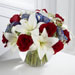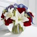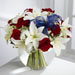 The FTD® Independence™ Bouquet will dazzle your recipient this Summer just in time for the exciting celebration that the Fourth of July brings. Brilliant red roses and white Asiatic lilies are subtly accented with Queen Anne's Lace and a sheer blue ribbon all perfectly presented in a clear glass bubble bowl creating a gorgeous gift that will make their holiday complete.