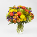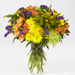 C5374Flowers of yellow and green�and pops of orange and purple. Full of color and texture, all you need is love and our Marmalade Skies Bouquet. Details: - Good bouquet is about 16""H x 14""W - Better bouquet is about 17""H x 16""W - Best bouquet is a about 17""H x 17""W