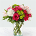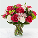 B35The true beauty of this bouquet is within the sweet colors of the flowers. An array of hot pink roses, pale pink alstroemeria and more are set in a glass cylinder vase, making a wonderful gift to light up the face of its recipient. GOOD bouquet 14″H x 14″W. BETTER bouquet is approx. 15″H x 15″W. BEST bouquet is approx. 16″H x 16″W.