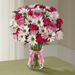 Sending a Sweet Surprises® Bouquet by FTD® is an absolutely charming way to send your warmest sentiments. Pink mini carnations, hot pink rose stems, white traditional daisies and lush greens are sweetly situated in a classic clear vase accented with a perfectly pink designer ribbon to create a bouquet that will delight your special recipient at every turn. The good bouquet doesn't include roses.