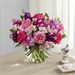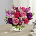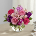 The FTD® Tranquil™ Bouquet blooms with a sweet sophistication and style to bring a calming grace to any event or occasion. Hot pink and pink roses are brought together with purple, lavender and fuchsia stock stems accented with pink Peruvian lilies and lush greens to create a simply stunning flower arrangement. Presented in a clear glass bubble bowl vase, this exquisite fresh flower bouquet will make an excellent birthday, anniversary or sympathy gift.
