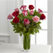 The FTD® True Romance™ Rose Bouquet is the perfect expression of love and passion to make this a truly memorable Valentine's Day. A bright burst of color, this bouquet combines red, pink and fuchsia roses, accented with beautiful greens and seated in a clear glass vase, to create a truly romantic representation of your love.